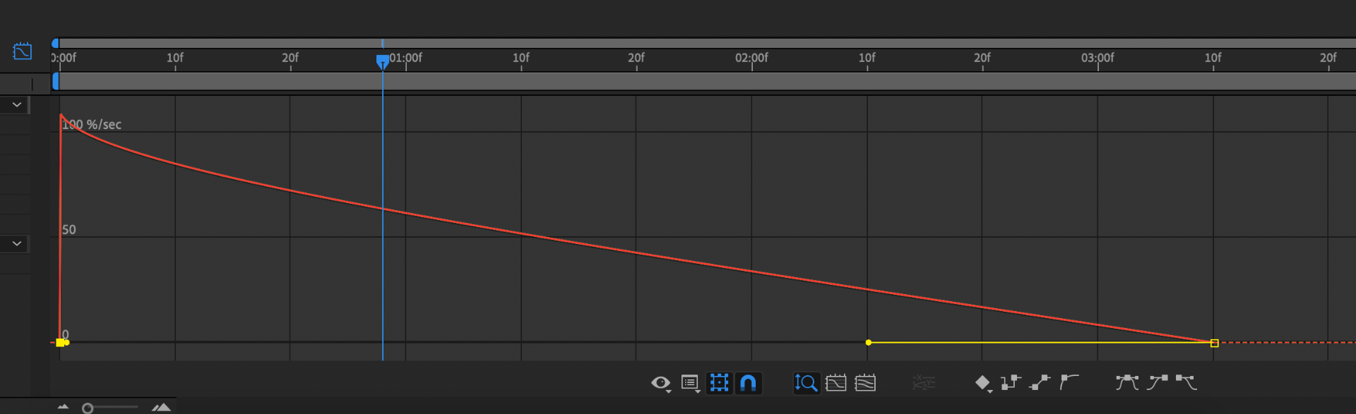 After i created an opacity transition so everything will fade out at the end. I wanted all the clips to fade out at the same time so i made one and copied the transition into the other layers and lined them all up. I then created a speed graph for the transition so it would fade out slowly. The opacity transition started at 100 and ended at 0.