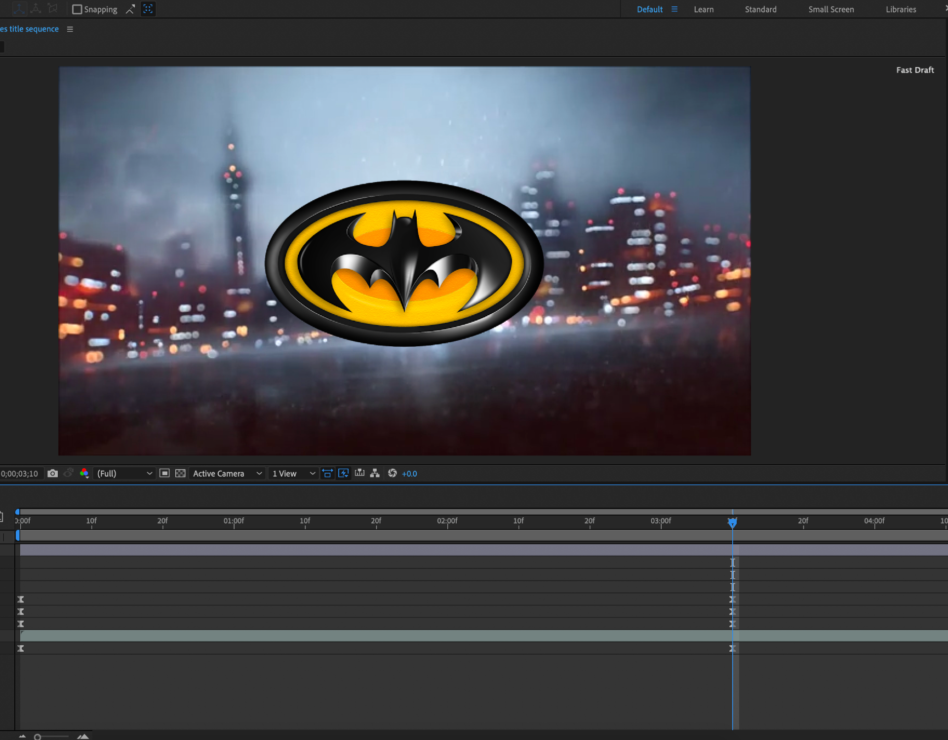 After that i imported my batman logo and rain video in, having my batman logo above so you can see it on top. Then i scaled my rain video up to 300 so it fit the whole screen and left the batman logo as it was since i believed it was a sensible size.