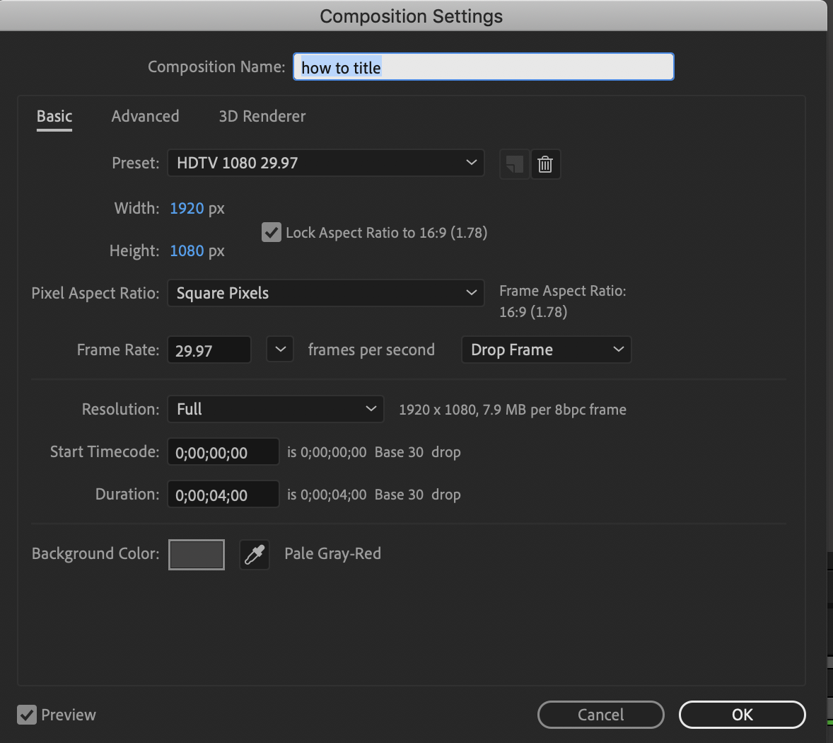 First we made a new composition on Adobe After Effects and changed the duration time to 10 seconds. I named the composition 'how to title' and then pressed 'OK' to begin making the title sequence.